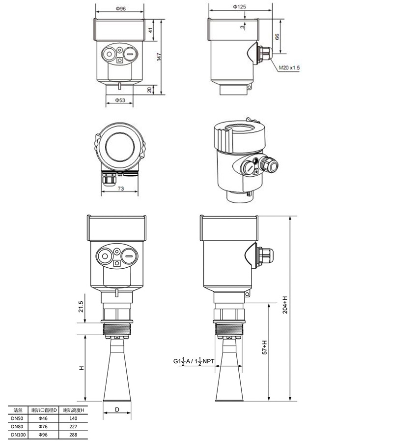 過程連接: 螺紋G1 1/2”/法蘭/支架